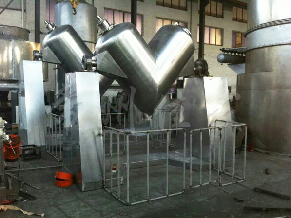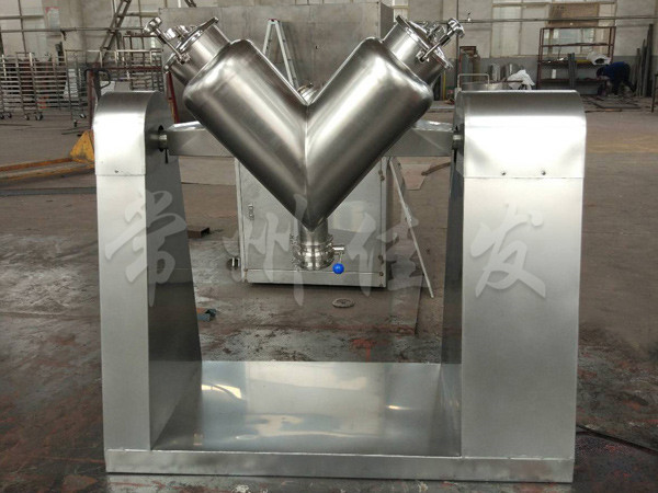 該機(jī)通過機(jī)械傳動,使不對稱的V型圓柱體內(nèi)的物料做往復(fù)翻動,達(dá)到均勻混合之目的。