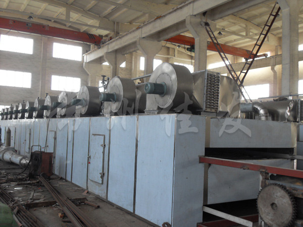 The material is evenly laid on the mesh belt by the feeder, and the mesh belt is generally made of 12-60 mesh stainless steel wire mesh, which is dragged by the transmission device and moved inside the dryer. The dryer is composed of several units, each with independent circulation of hot air. Part of the exhaust gas is discharged by a dedicated wet fan, and the exhaust gas is controlled by a regulating valve. The hot air passes through the mesh belt covered with materials from bottom to top or from top to bottom to complete the process of heat and mass transfer, taking away the moisture of the materials. The mesh belt moves slowly, and the running speed can be automatically adjusted according to the material temperature. The dried finished product continuously falls into the feeder. The upper and lower circulation units can be flexibly equipped according to user needs, and the number of units can also be selected according to needs.