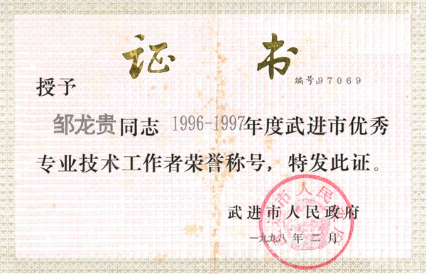 Project Award Certificate